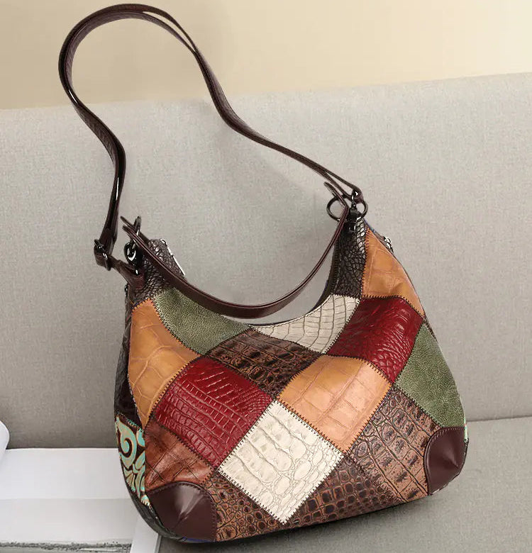 Elevate your style with our Women's Large Capacity Genuine Leather Stitching Shoulder Tote Bag. Crafted from high-quality cow leather, this tote bag combines elegance with functionality. The unique color contrast design and striking geometric patterns ensure that you stand out in any crowd.