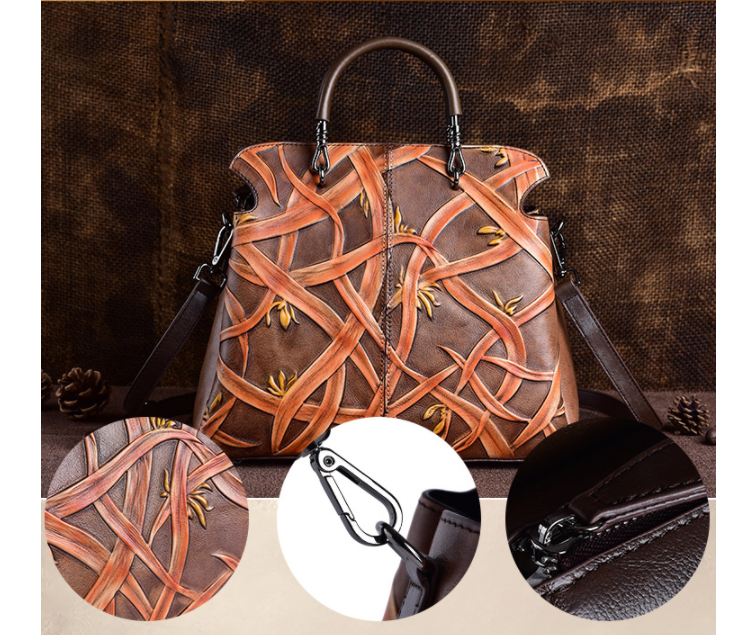 Discover the perfect blend of style and functionality with our stunning retro women's handbag. Crafted from premium first layer cowhide, this bag showcases a unique embossed design that adds a touch of elegance to your daily outfits.